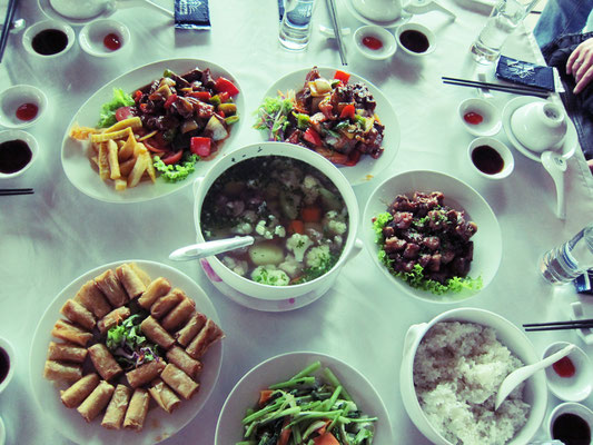 Wie zu erwarten, ist die vietnamesische Küche sehr Reis lastig. Unser Tisch wurde häufig mit vielen Gerichten vollgestellt. Jeder konnte dann von jedem probieren oder eben auch nicht. Dazu gab es immer eine riesige Schüssel Reis.